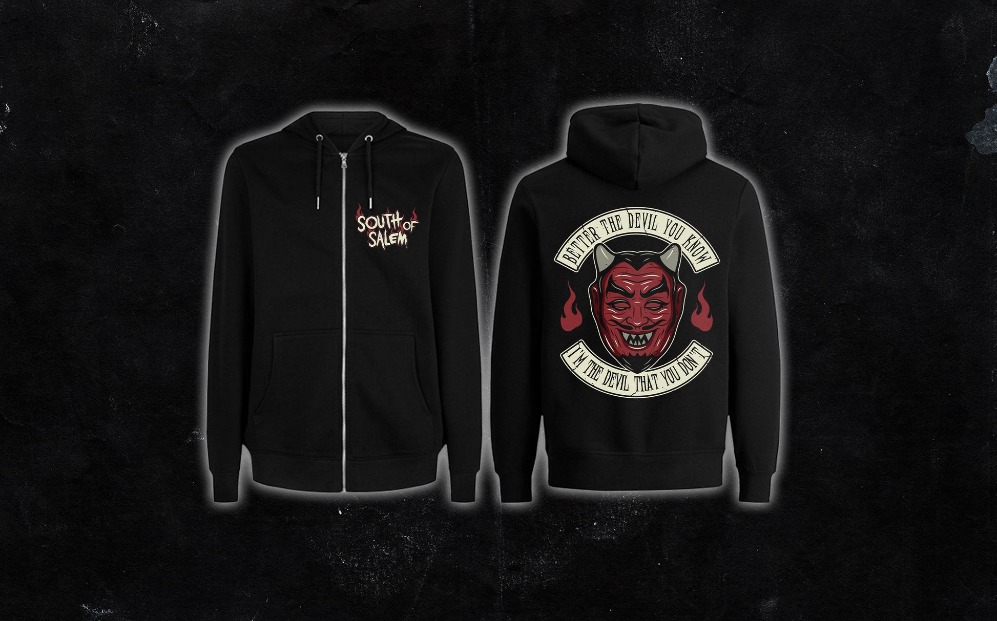 SOUTH OF SALEM's official 'Devil You Dont' Hoodie. Printed on a comfortable, Just hoods zip-up hoodie.